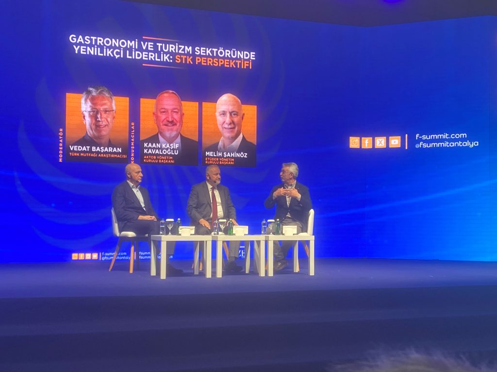 Yönetim Kurulu Başkanımız Melih Şahinöz, Sözen Group tarafından bu yıl VI.’sı düzenlenen ve Antalya NEST Kongre Merkezi’nde gerçekleştirilen F-SUMMIT’in açılış konuşmasını yaptı. Konuşmasında, ağırlama sektöründe ekosistem yaklaşımının ve güçlü iş birliklerinin sürdürülebilir büyüme açısından taşıdığı kritik öneme dikkat çekti.  Yönetim Kurulu Başkanımız Şahinöz açılış konuşmaları sonrası, Vedat Başaran’ın moderatörlüğünde gerçekleştirilen “Gastronomi ve Turizm sektöründe yenilikçi liderlik STK perspektifi “ konulu panelde Astob Yönetim Kurulu Başkanı Kaan Kaşif Kavaloğlu ile birlikte yer alarak sektörün geleceğine ilişkin değerlendirmelerde bulundu.