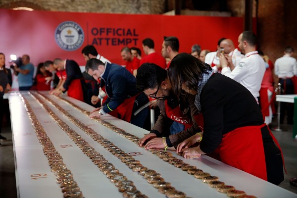 Türkiye’nin farklı bölgelerinden ustaların katılımıyla İstanbul’da gerçekleşen Turyağ Bahar Şenliği’nde, dünyanın en uzun kurabiye zinciri rekoru kırıldı. Toplam 60 kilo un, 200 adet yumurta ve 40 kilo yağ kullanılarak hazırlanan kurabiyeler, 100 kişilik bir ekip tarafından “T” harfini oluşturacak şekilde dizildi.