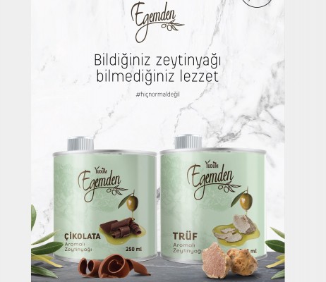 Ege’de üretilen lezzeti ve kalitesi ile öne çıkan Egemden zeytinyağları portföyünü yepyeni gurme lezzetler ile zenginleştiriyor. Egemden gurme lezzetler ailesine yeni katılan trüflü ve çikolata aromalı zeytinyağı çeşitleriyle leziz ve birbirinden güzel tariflerle sofralar şenleniyor.