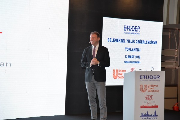 Konuşmaların ardından toplantının sponsorluğunu üstlenen Unilever Food Solutions Genel Müdürü Önder Arsan’a plaket takdim eden ETÜDER Başkanı Melih Şahinöz, ETÜDER üyeleri olarak hep birlikte daha güzel ve daha kazançlı günlere kavuşma dileğinde bulundu.