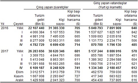 Turizm geliri ve gideri, IV. Çeyrek: Ekim-Aralık, 2017