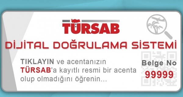 TÜRSAB üyesi acentalar, Dijital Doğrulama Sistemi’ne online başvuru yapabilecekler. Başvurular TÜRSAB tarafından uygun görüldüğü takdirde, web üzerinden hizmet veren acentalara gönderilecek, üzerinde acenta belge numarası bulunan dijital doğrulama logosu, siteye yerleştirilecek. Site ziyaretçileri; dijital doğrulama logosuna tıkladığında tatil aldıkları sitenin TÜRSAB’a kayıtlı bir seyahat acentası olup olmadığını, şirket ünvanını ve iletişim bilgilerini görebilecekler. Dijital doğrulama sistemi logosu kopyalanarak, TÜRSAB tarafından onaylanmamış bir siteye yerleştirildiğinde ise birliğe kaçak acenta bildirimi ulaşacak ve gerekli denetimler başlatılacak.